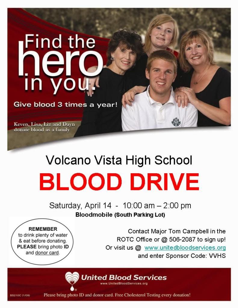 [Volcano_Vista_HS] VVHS Blood Drive--Saturday, April 14, 10 AM-2 PM