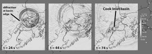 FAIRBANKS — Red and blue waves triggered by a magnitude 4.6 earthquake rippled outward from the Anchorage area and fizzled out after 45 seconds. Except in Cook Inlet basin, where the waves were trapped for another half-minute, bouncing back and forth, up and down, within the 7.5-kilometer-thick sedimentary basin.